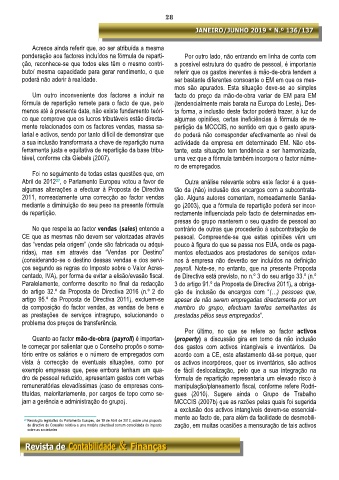 Quanto ao factor mão-de-obra (payroll) é importan- (property) a discussão gira em torno da não inclusão