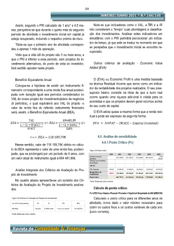 Figura 19 Critérios de Avaliação de Projetos de Investimento Calculado o ponto crítico para os diferentes anos de