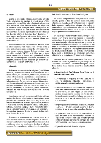 Estarão as coletividades religiosas, reconhecidas em Cabo No entanto, o enquadramento fiscal pode mudar, comple-