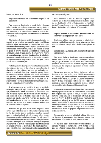 Cabo Verde verdiana, que os donativos atribuídos às coletividades religio-