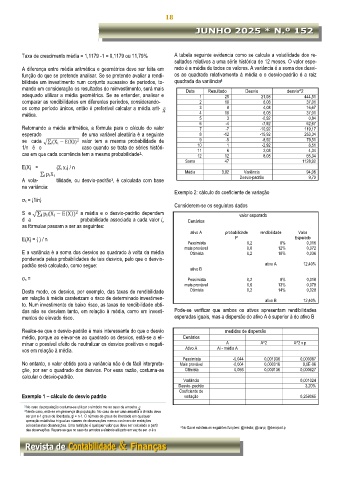 Taxa de crescimento média = 1,1179 -1 = 0,1179 ou 11,79% A tabela seguinte evidencia como se calcula a volatilidade dos re-