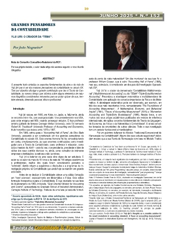 reza biográfica considerados relevantes para se poder ajuizar da sua, tam- Accounting”. Preconizou a abordagem matemática e multidimensional da